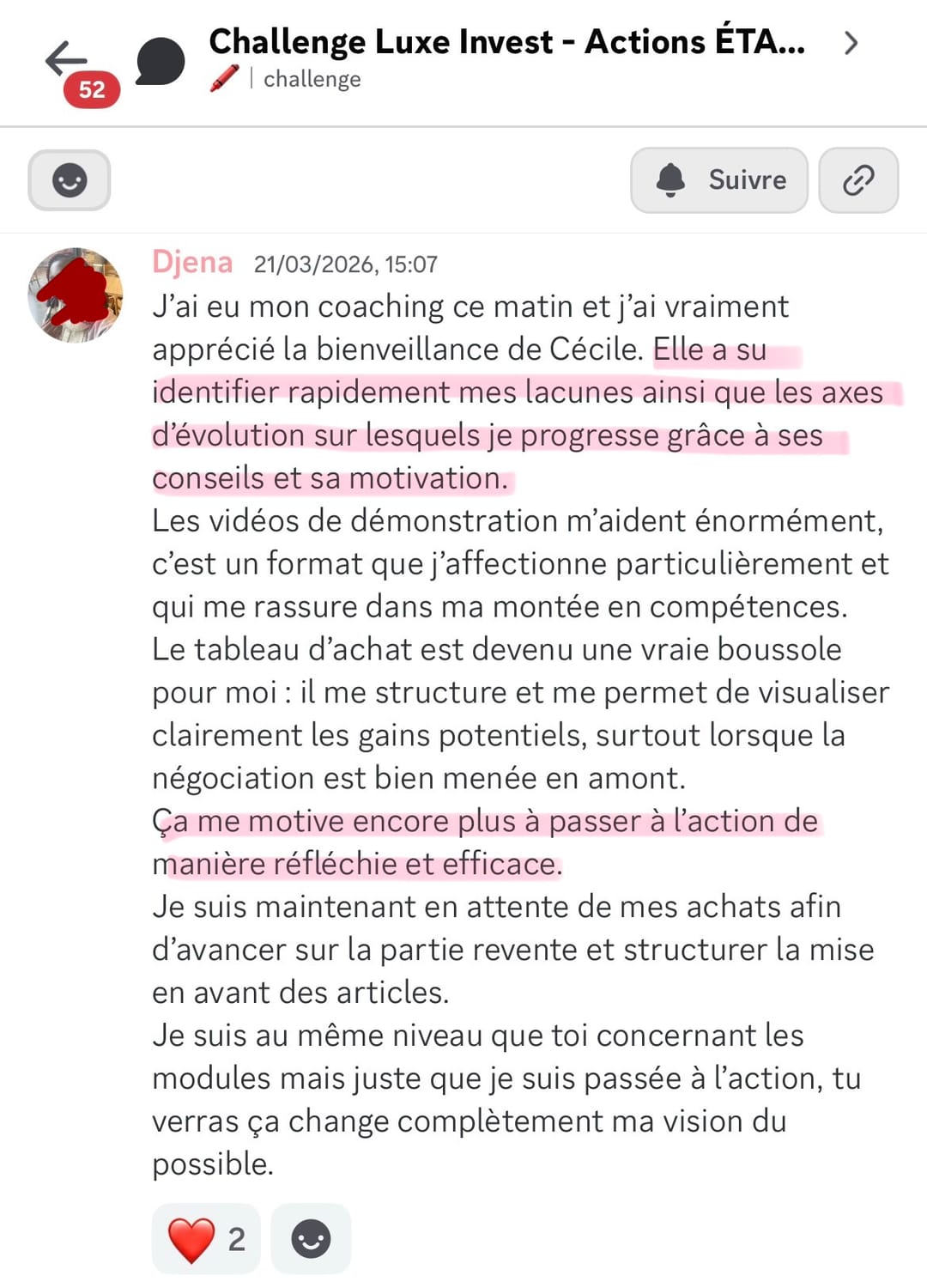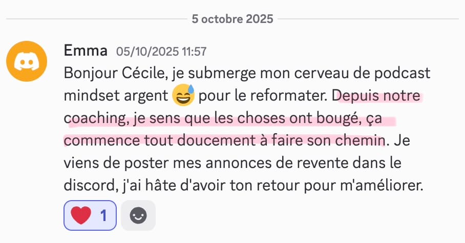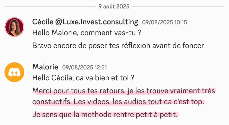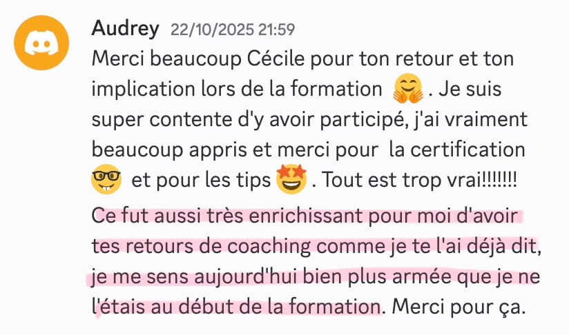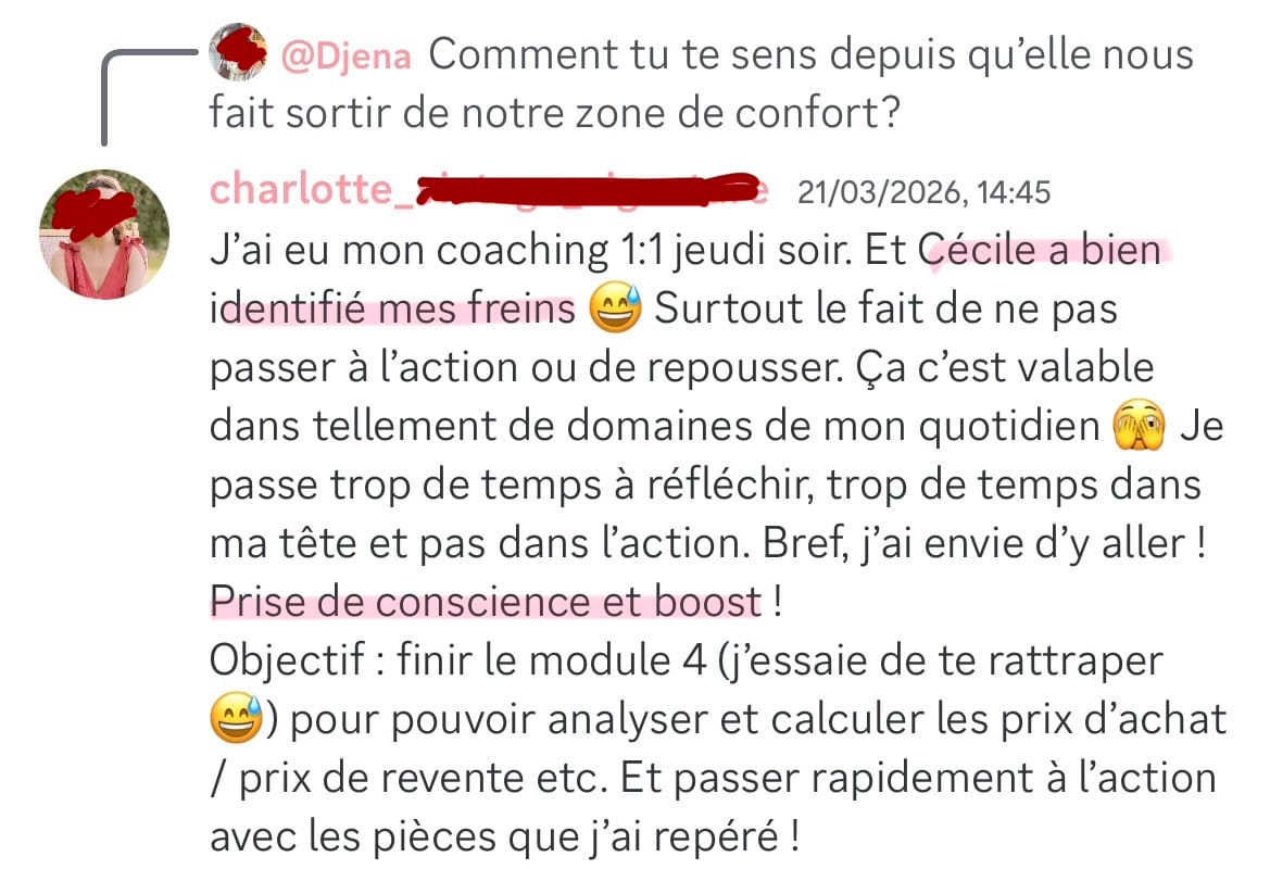 Je reste disponible en message privé sur la communauté pendant toute la durée de l’accompagnement