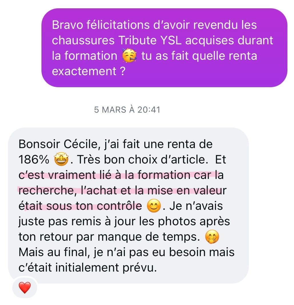 Je te suis étape par étape dans tes achats ET dans tes reventes, les deux sont aussi importants